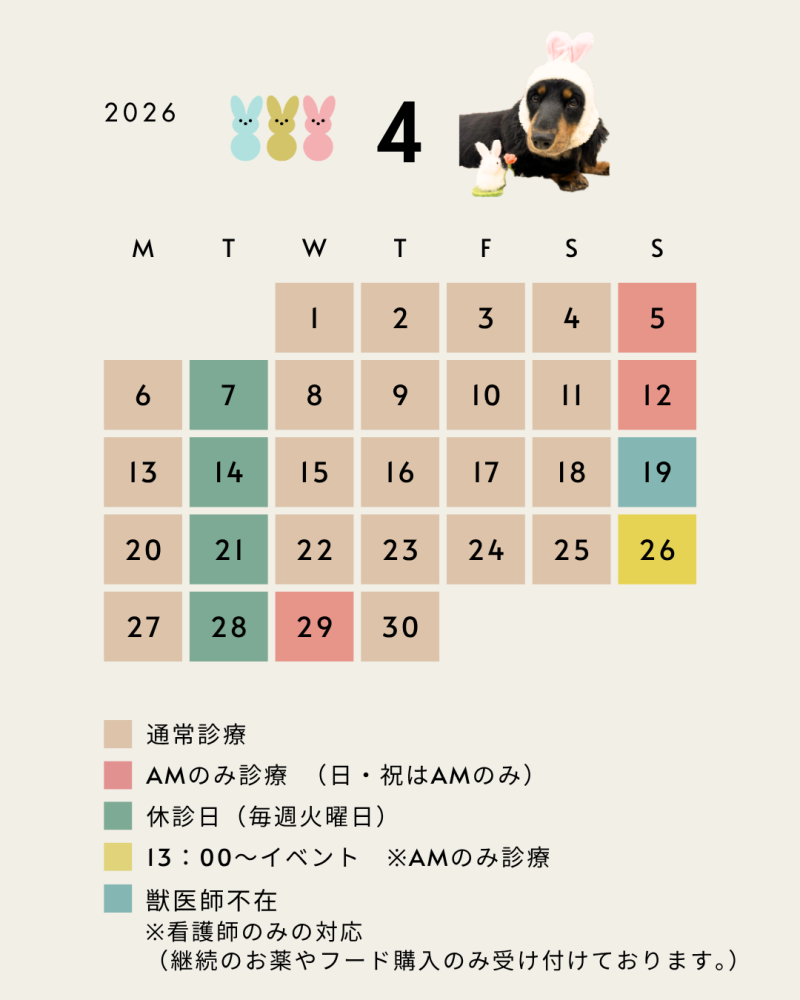 ※4/19 獣医師不在のため看護師のみの対応になります。